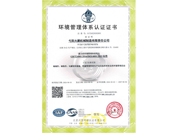 • 09-28弋陽大鵬機械制造有限責任公司成功取得規(guī)范